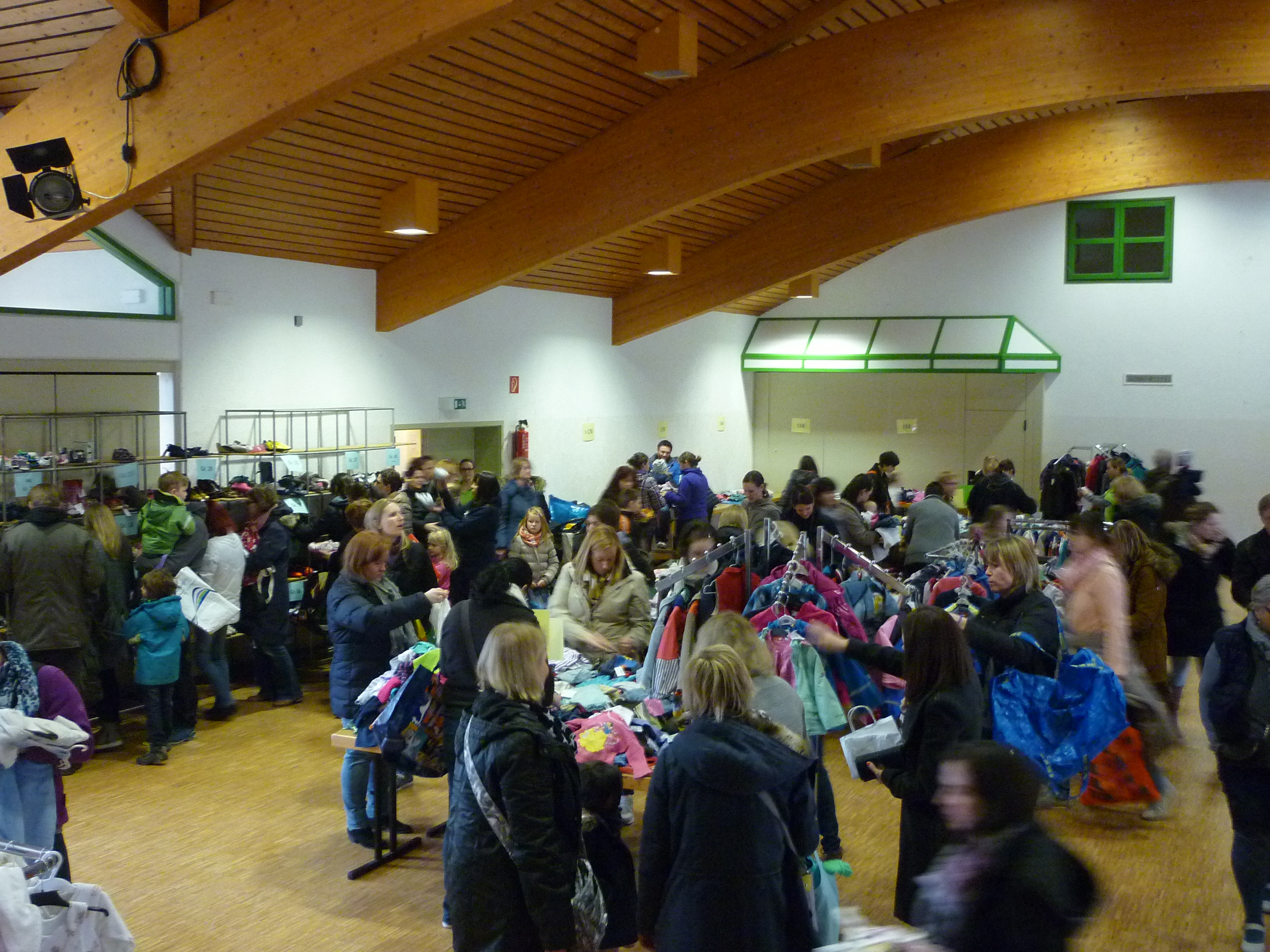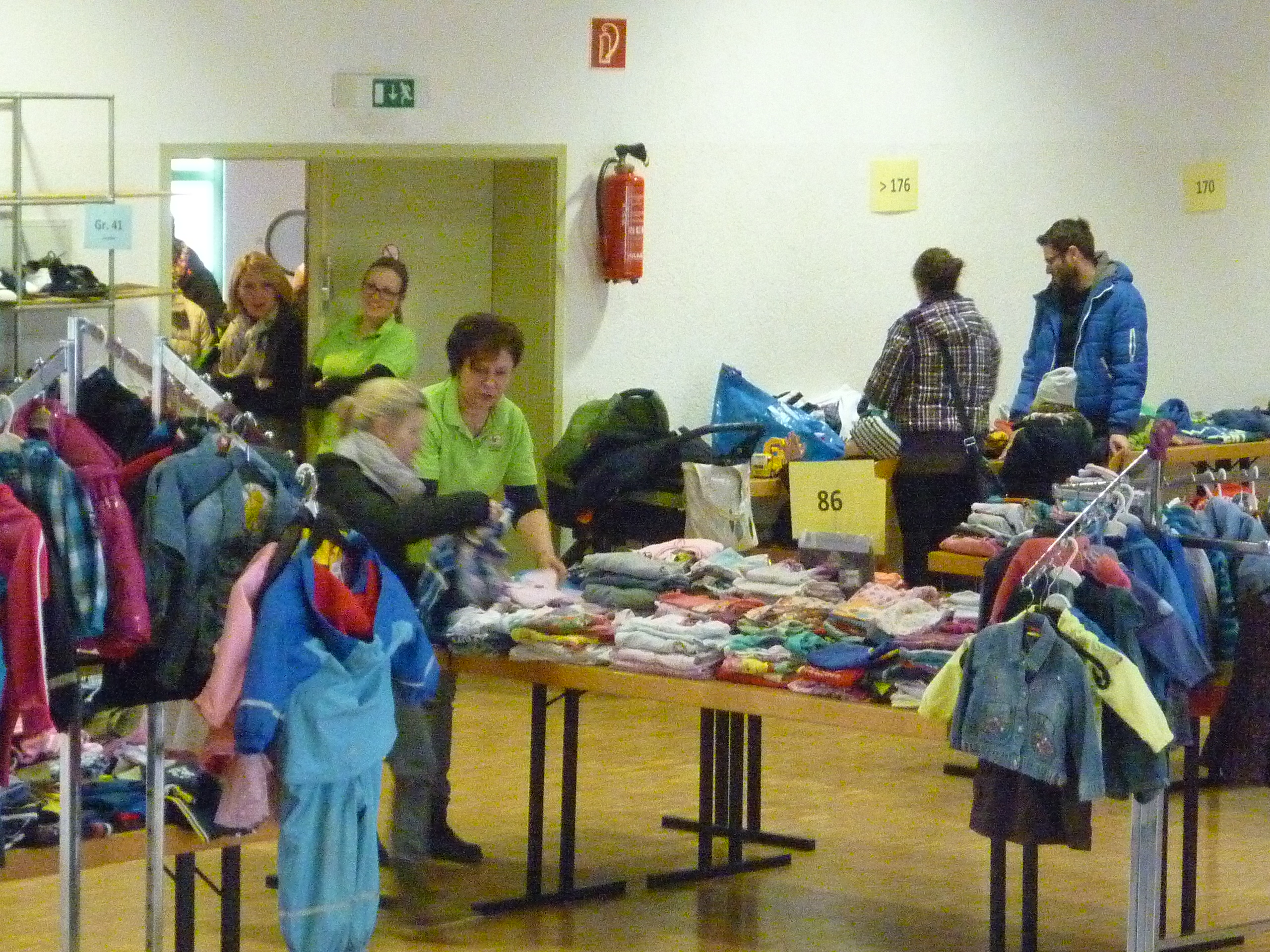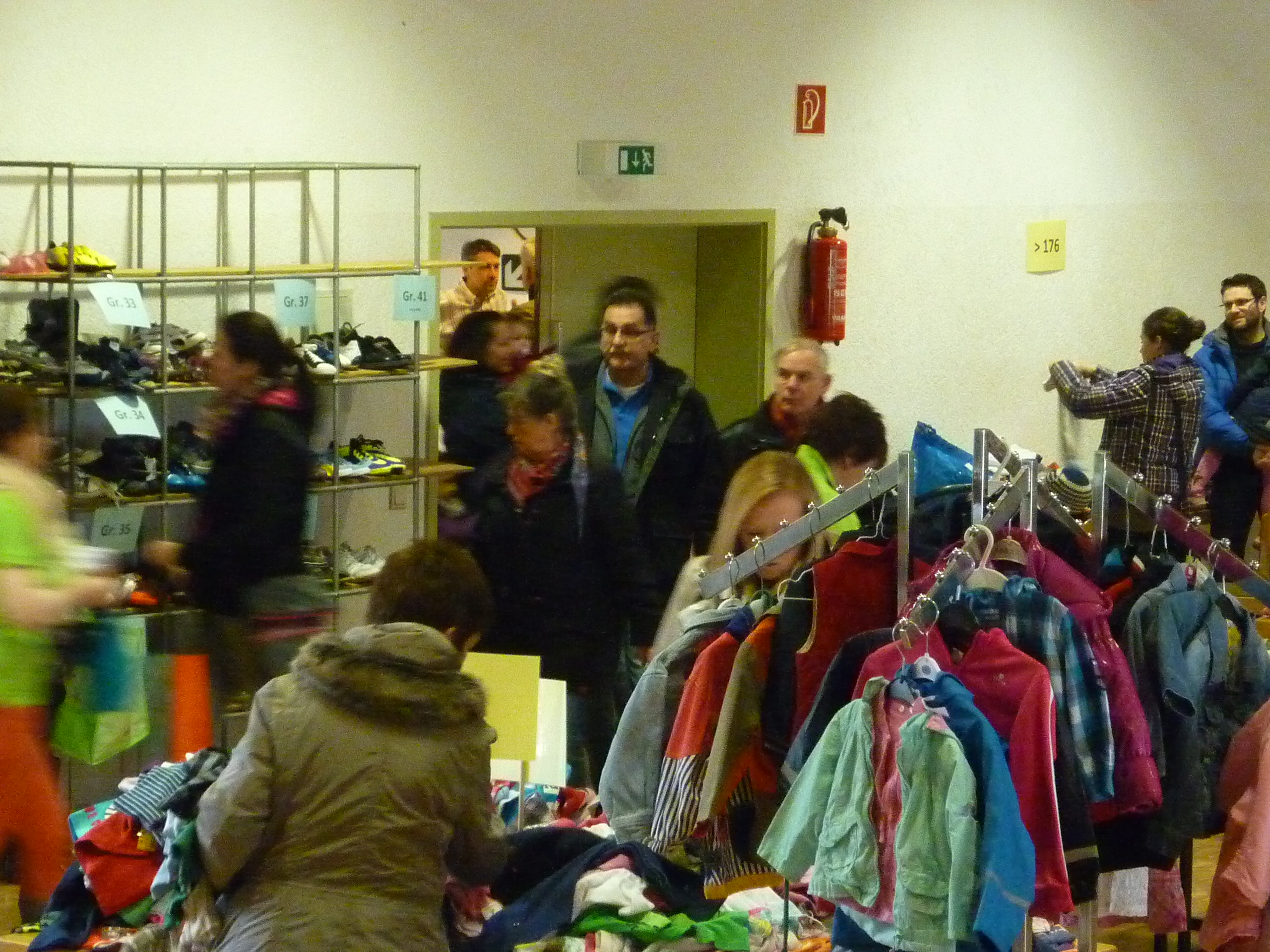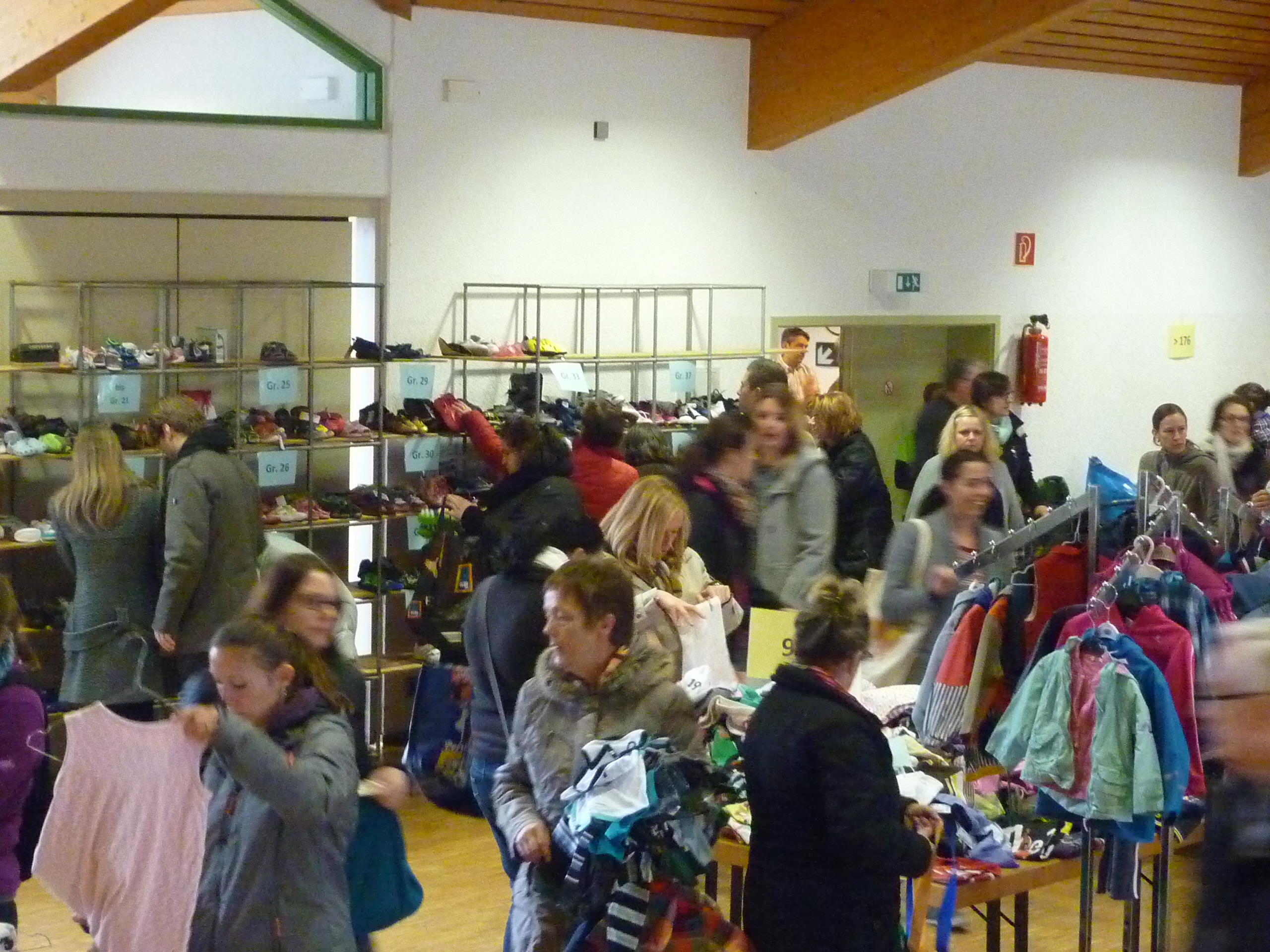 die ersten Interessenten für Schuhe |  der Raum füllt sich |  und es wird gesucht und geprüft |