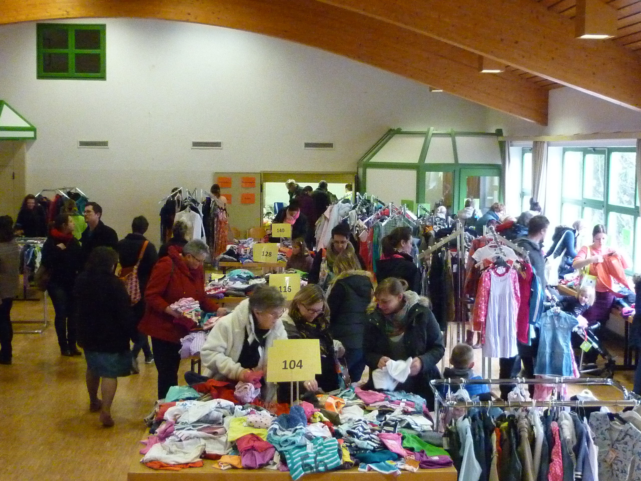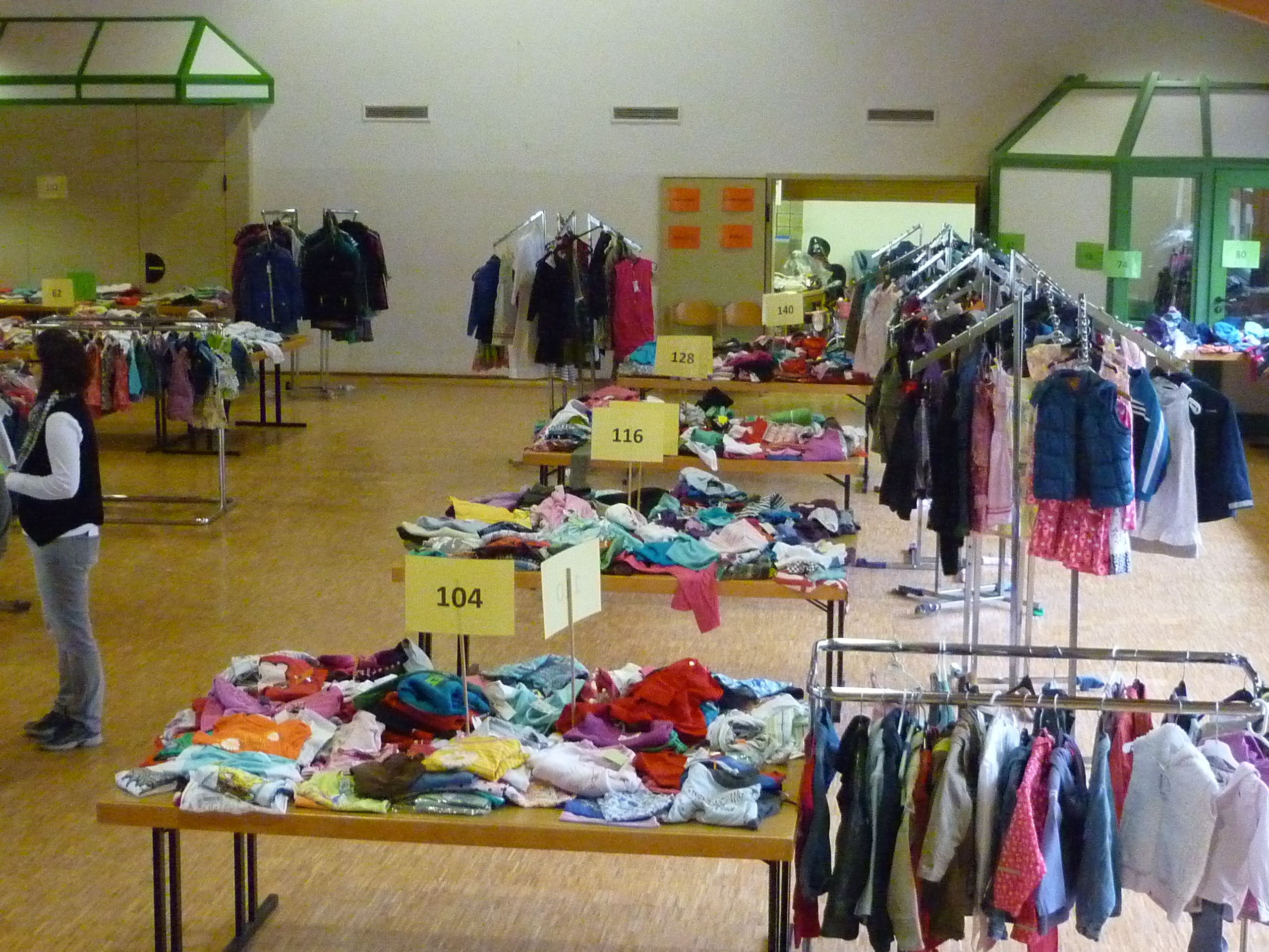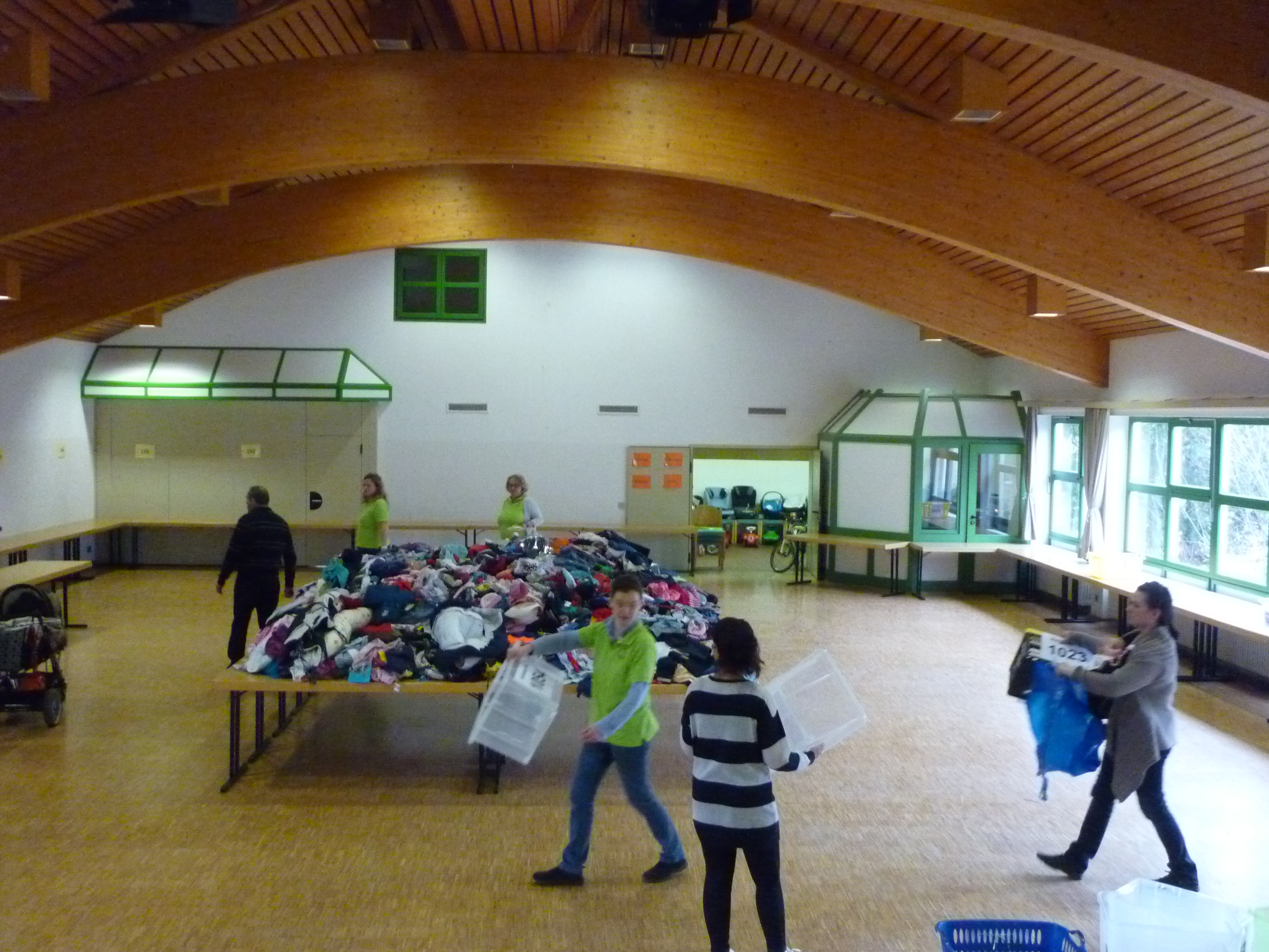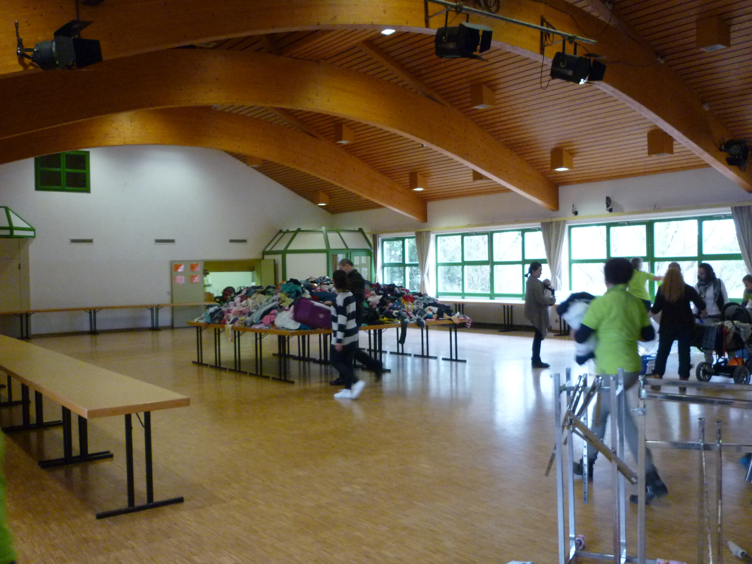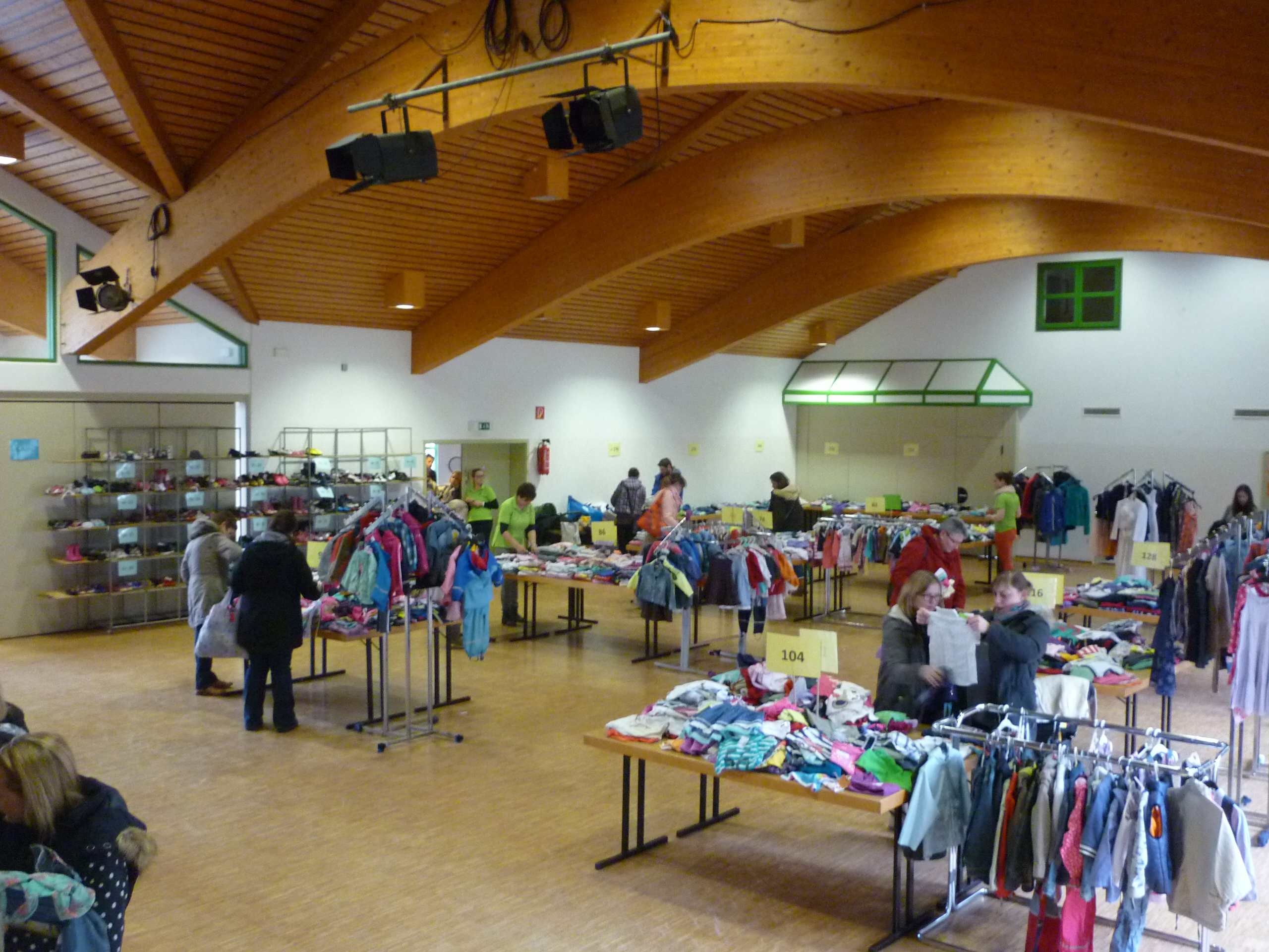 die ersten Interessenten für Schuhe |  der Raum füllt sich |  und es wird gesucht und geprüft |